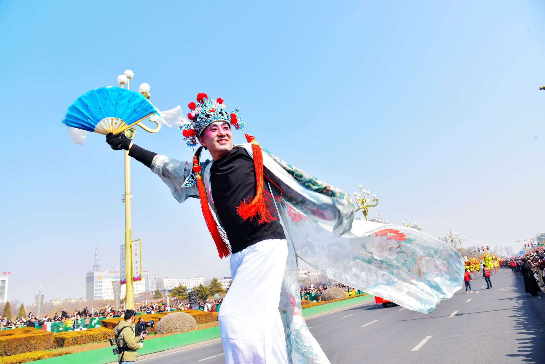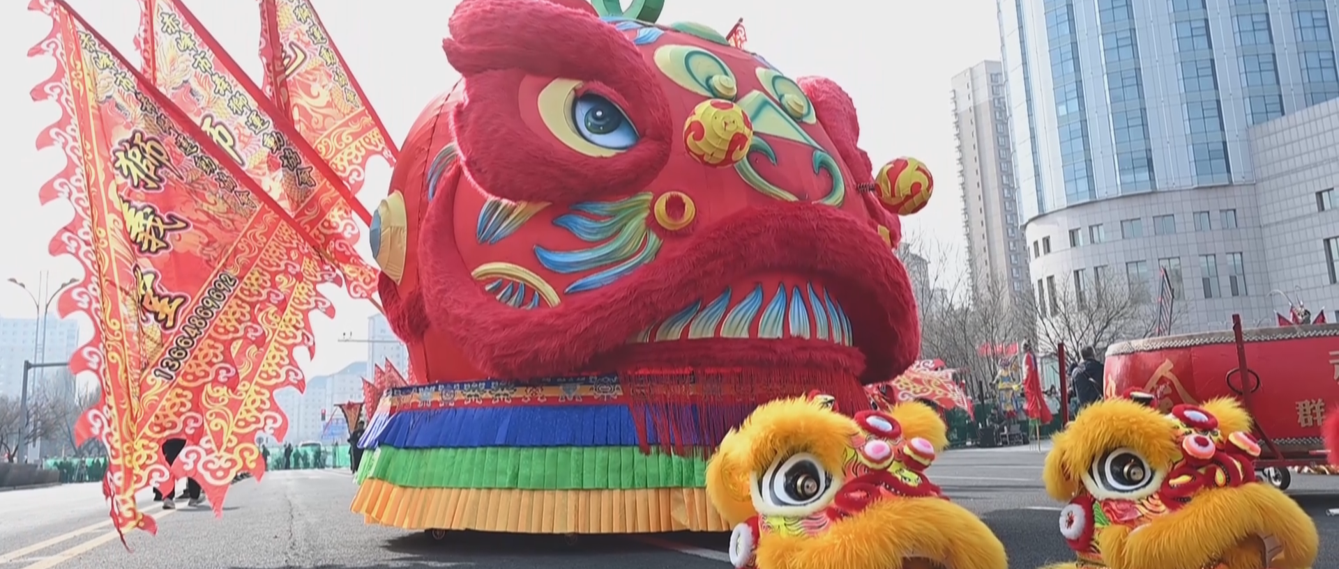 3.8米“赤峰狮”与蒙东第一金龙亮相高跷巡