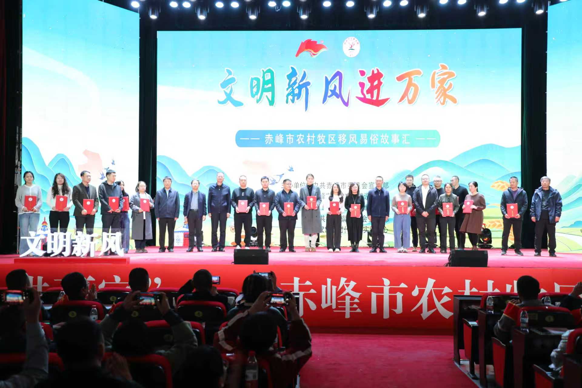 文明植阡陌,新风沐乡野。10月31日,赤峰市农村牧区移风易俗故事汇在敖汉旗举办。来自全市各地从事文明实践工作的干部群众及道德模范代表400余人齐聚一堂,通过实地观摩、展演汇报的形式,共同见证移风易俗工作带来的新变化,感受文明新风拂面的温暖力量。