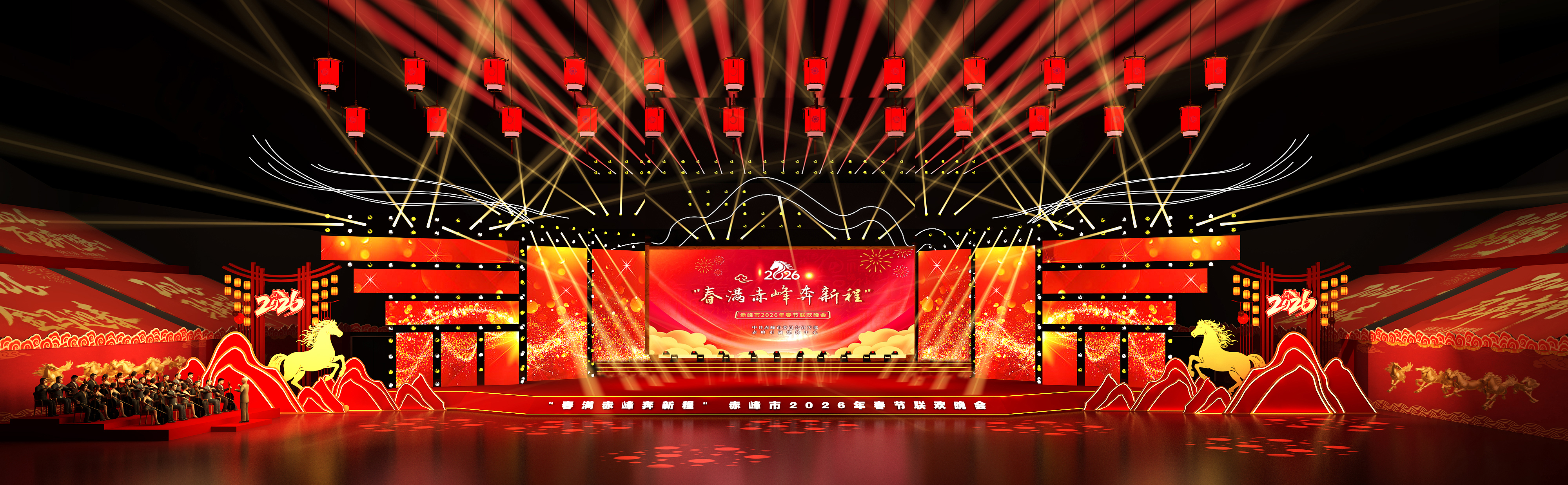 在这一设计理念下,舞美搭建将红山文化、马元素等极具赤峰地域文化特色的元素与现代前沿科技相结合,在方寸之间构建出既有辽阔草原意境、深厚历史底蕴,又充满未来感与表现力的艺术空间,力求使现场观众获得身临其境的震撼体验,同时确保通过电视、网络等渠道收看的用户也能感受到高品质的视听效果。
