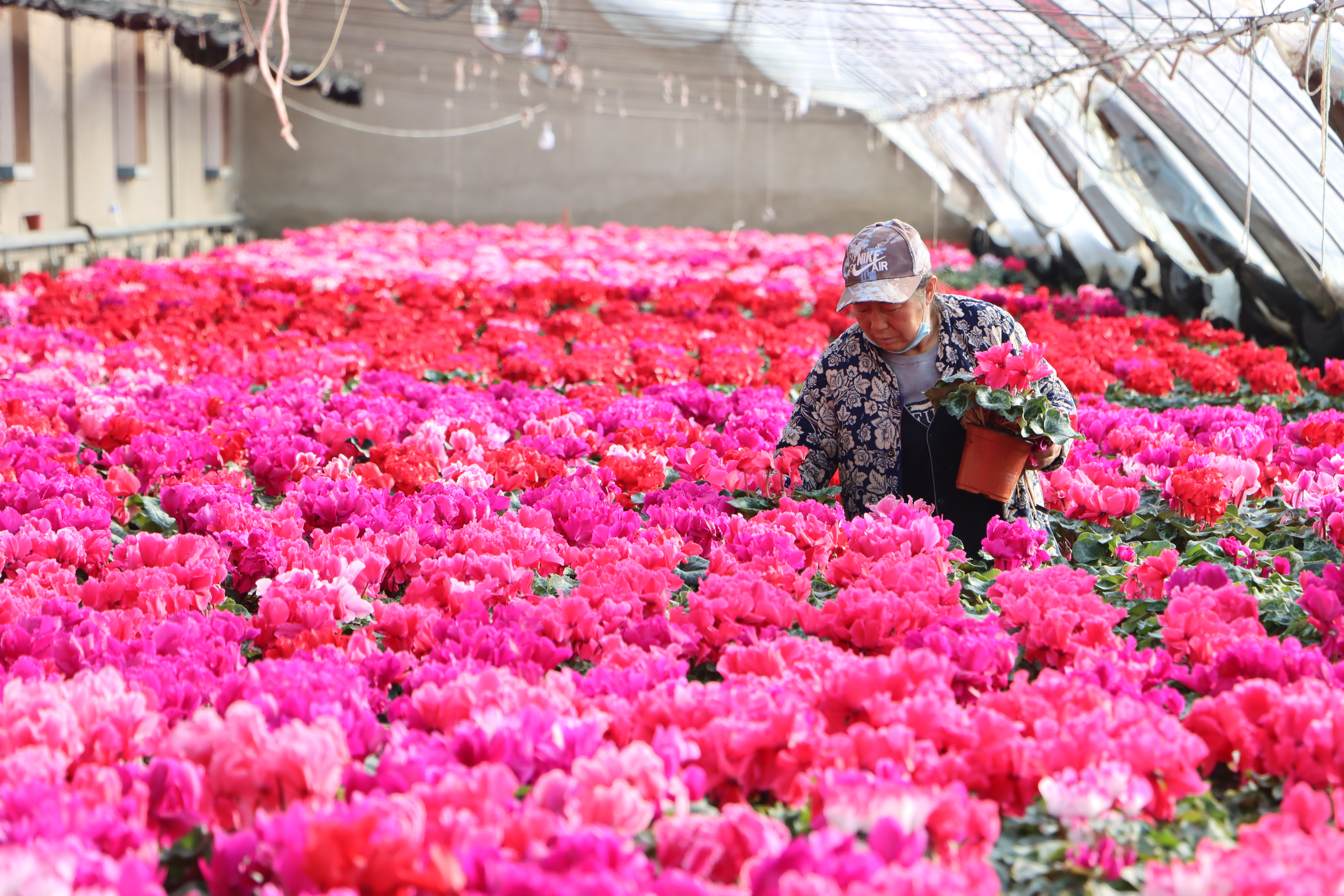 2015年,百纳花卉产业园区在常胜村正式落地,从最初的几座简易设施大棚慢慢摸索,如今已发展到拥有10个暖棚、3个冷棚的规模。园区配齐温控、灌溉等设备,全程科学管护,保证鲜花品相好、长势稳。园区主打“蝴蝶兰”、“仙客来”等大众喜爱的花卉品种,实现种苗培育、标准化种植、产销一体完整产业链,年产盆花、花苗达100万盆(株),年产值能达400万元,收益达200万元。产品不仅供应周边地区需求,还通过电商销往河北、唐山、北京等地。如今的常胜村,一座座花卉设施大棚暖意融融,一朵朵鲜花竞相绽放,真正走出一条产业兴、百姓富、乡村美的乡村特色产业振兴之路。