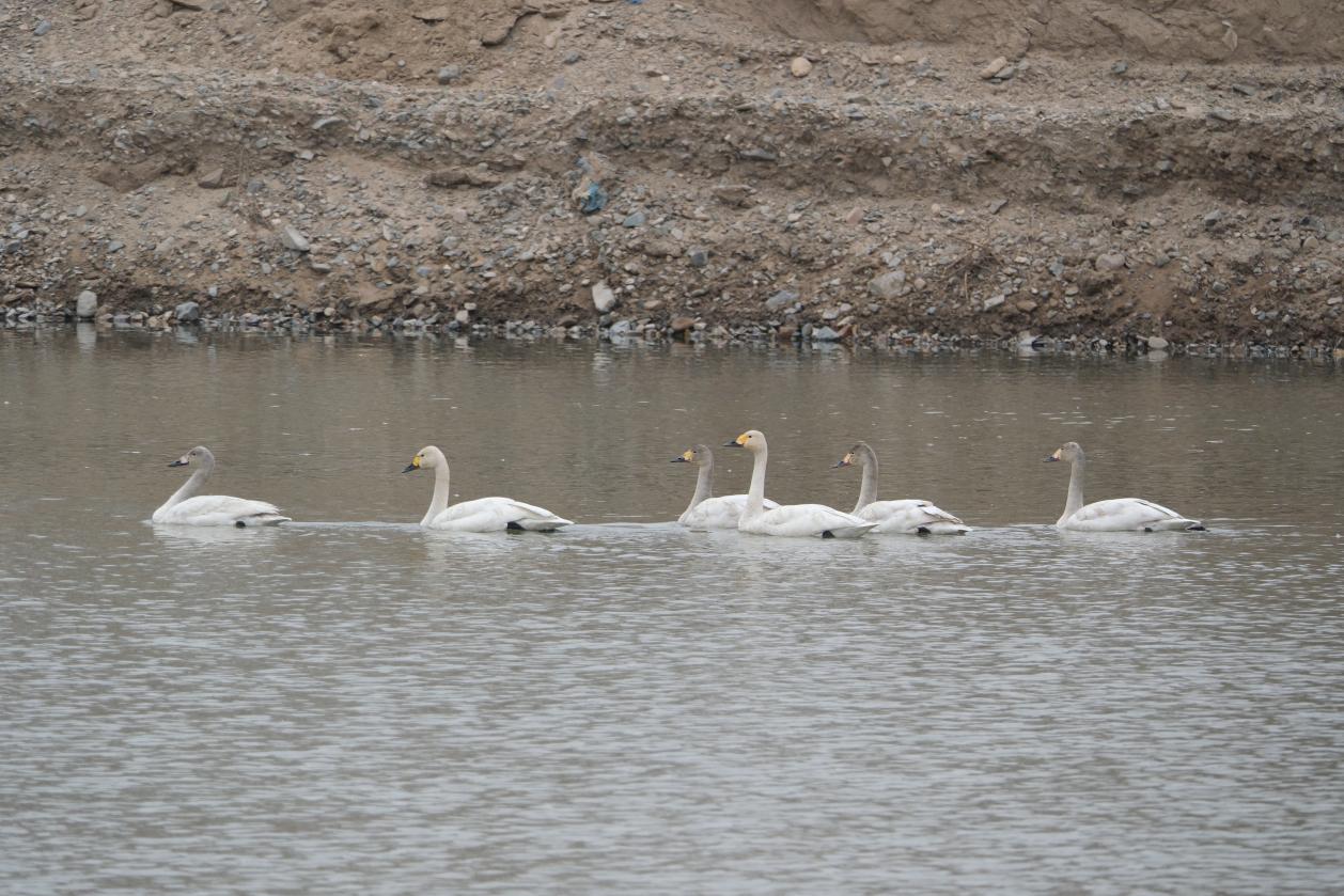 近日天气转暖,巴林左旗乌力吉沐沦河国家湿地公园迎来今春首批北归“贵客”——一家六口小天鹅翩然抵达。它们在波光粼粼的水面上悠然游弋、相伴嬉戏,为初春的湿地增添了勃勃生机。