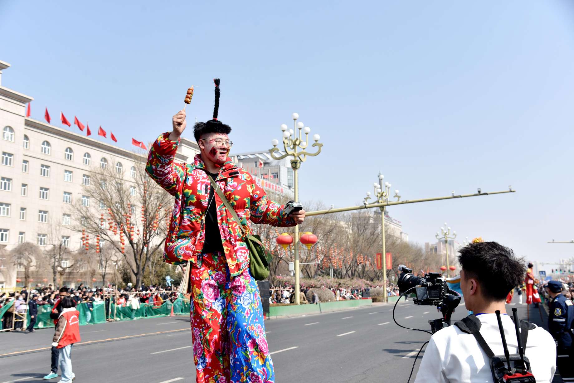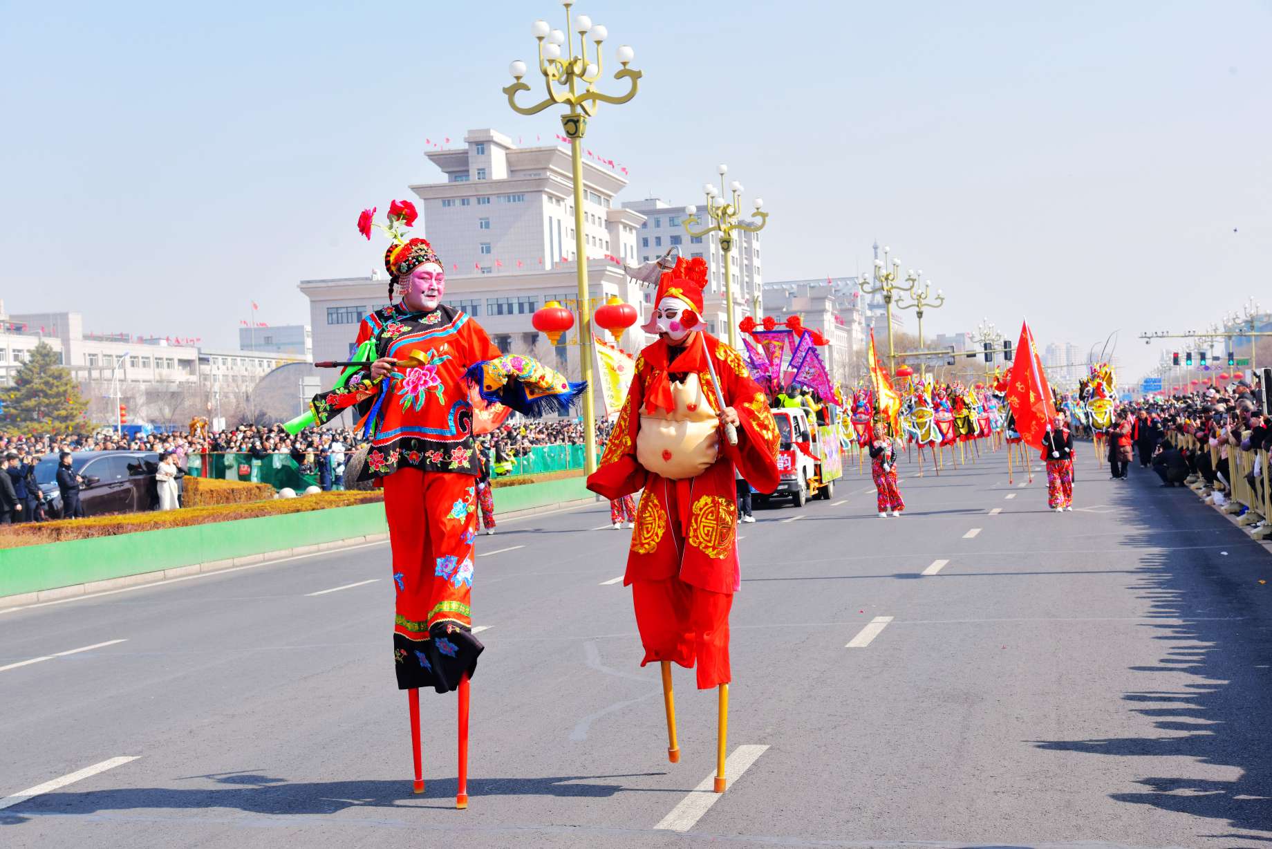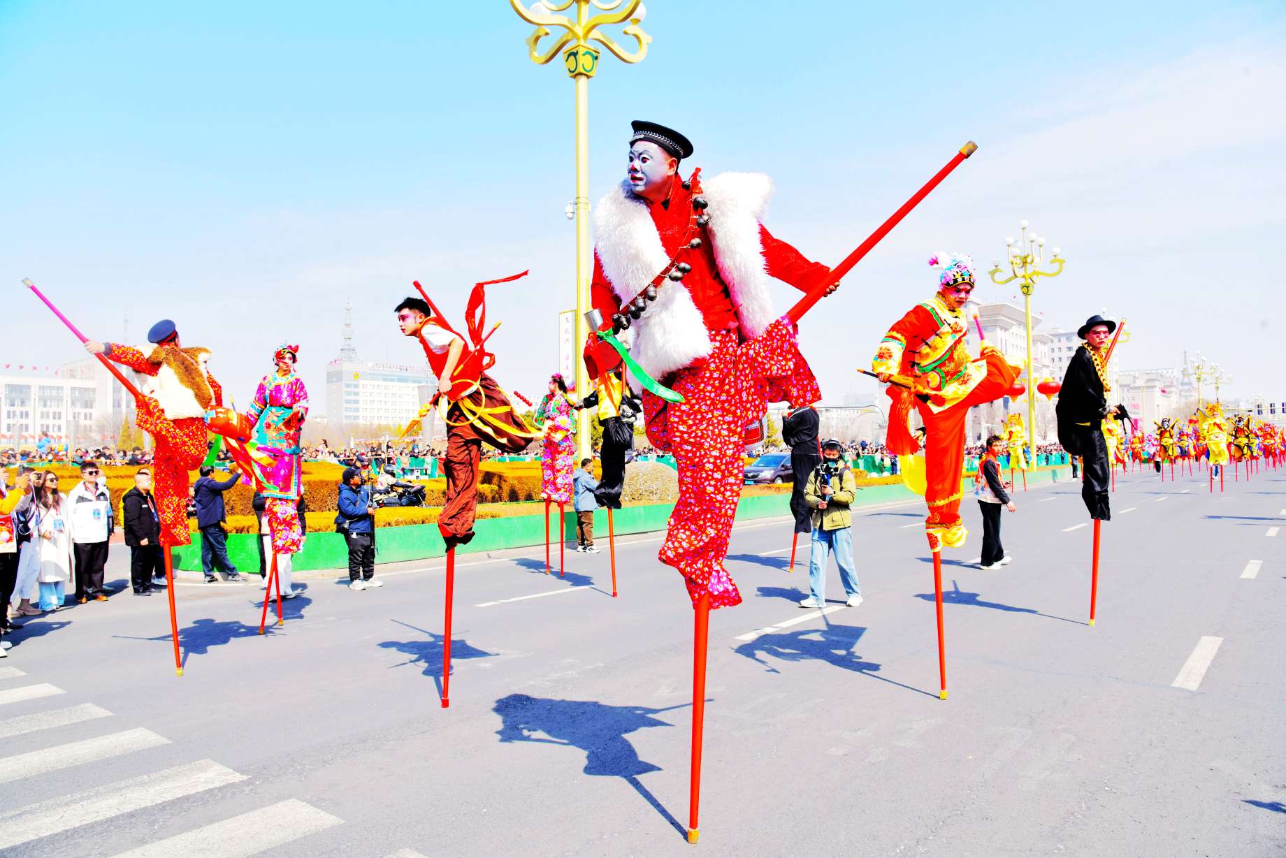 3月21日,由中共赤峰市委员会宣传部、赤峰市文化和旅游局、松山区人民政府主办,赤峰市群众艺术馆、松山区文化旅游体育局承办,赤峰市艺术剧院、松山区文化馆、红山区文化馆协办的“周末上哪疯 一站到赤峰”——“蒙宴之约”八省区高跷大巡游,在赤峰市中心城区玉龙大街隆重上演。来自内蒙古、辽宁、河北、北京、天津、山东、黑龙江、吉林的36支顶尖高跷及民俗表演队伍、2026名民间艺术家同场竞艺,以气势磅礴、精彩绝伦的街头巡游,为市民游客带来一场别样的视觉享受与民俗文化体验。