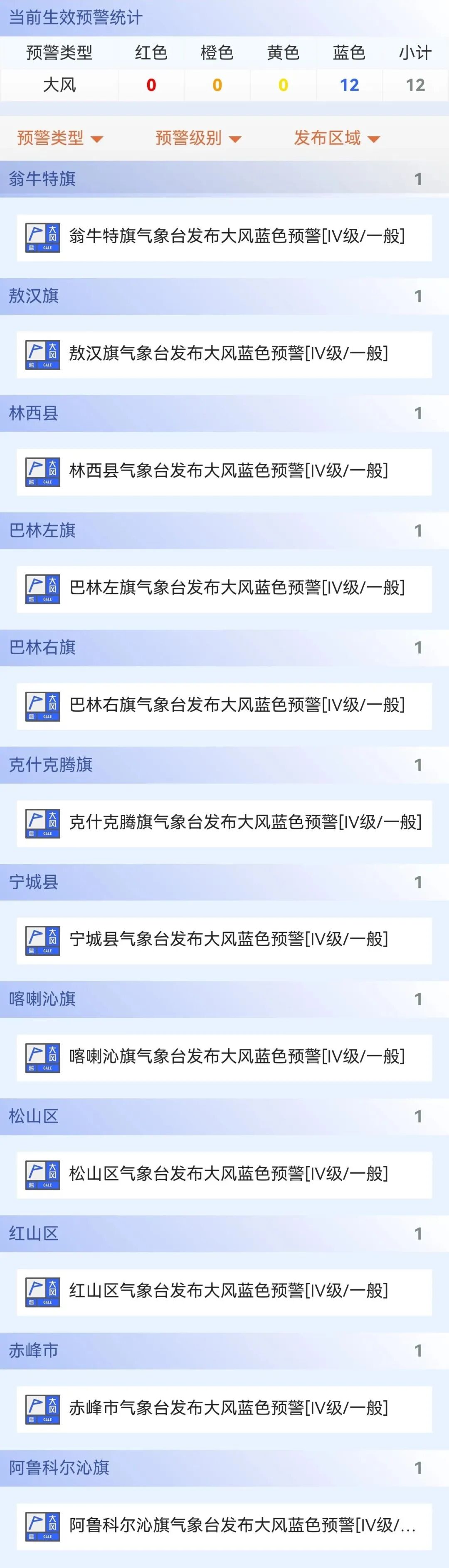赤峰多地陆续发布预警信息